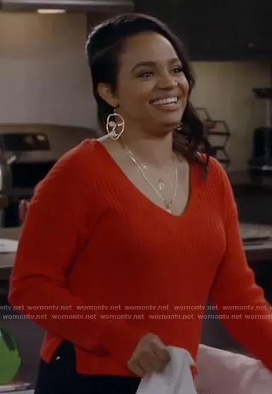 Kimberly's pink space dye pointelle sweater on The Sex Lives of College Girls