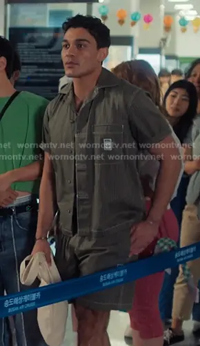 Q's green striped shirt and shorts on XO Kitty