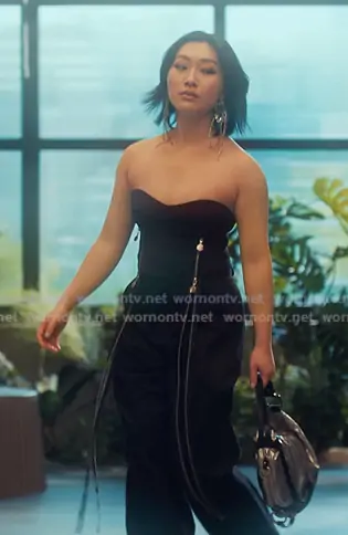 Gigi's black zip detail strapless top on XO Kitty