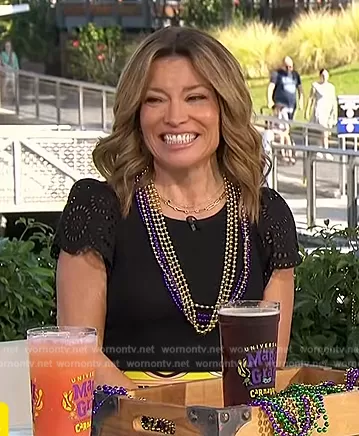 Kit's black ruffle sleeve top and print shorts on Access Hollywood