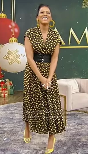 Tamron's black belted polka dot dress on Tamron Hall Show
