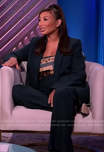 Adrienne's beige stripe oversized shirt and shorts on The Real
