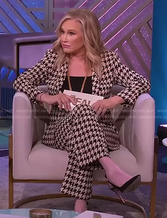 Kathy Hilton's beige houndstooth blazer and pants on The Real