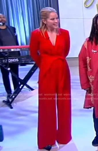 Alyssa's red floral print wrap dress on The View