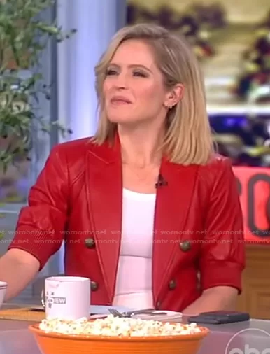 Sara's red short sleeve leather blazer on The View