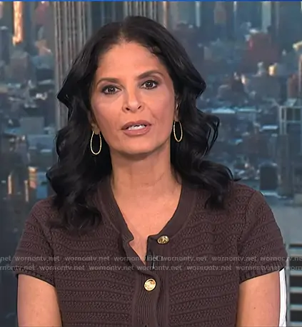 Darlene's brown short sleeve knit cardigan on Today