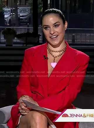 Donna's black polka dot ruffle shoulder mini dress on Today