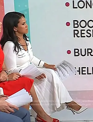 Laura’s pink puff sleeve top and white pleated skirt on Today