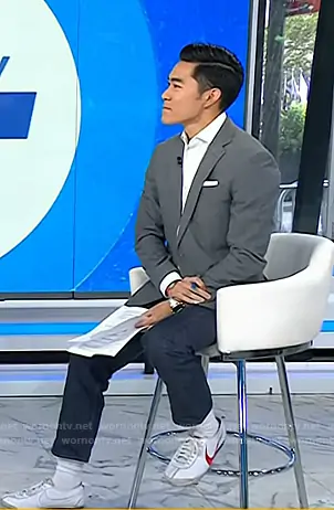 Jenna's navy pinstripe blazer and wide-leg pants on Today