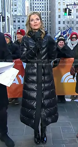 Savannah's black long down coat on Today