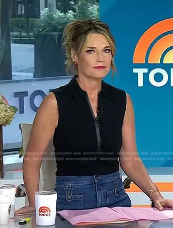 Savannah's black ruched sleeve blouse and white midi skirt on Today