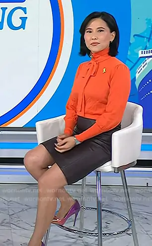 Vicky's orange tie neck knit top on Today